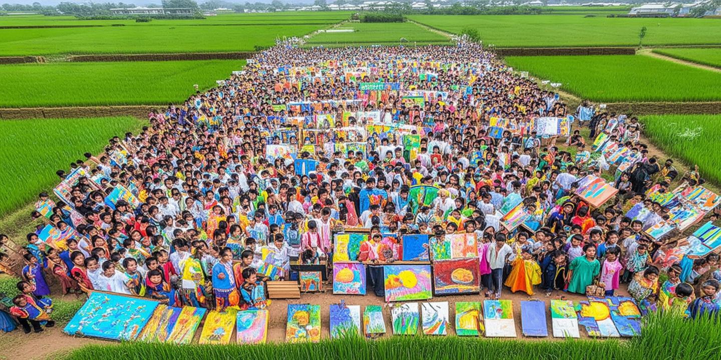 在稻田艺术节的拍卖环节,一幅幅精美的画作被竞相拍卖。这些画作不仅具有艺术价值,更承载着学生们对贫困生的关爱。拍卖所得善款将全部用于资助贫困生,帮助他们顺利完成学业。